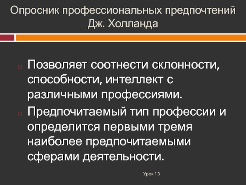 Позволяет соотнести склонности, способности, интеллект с