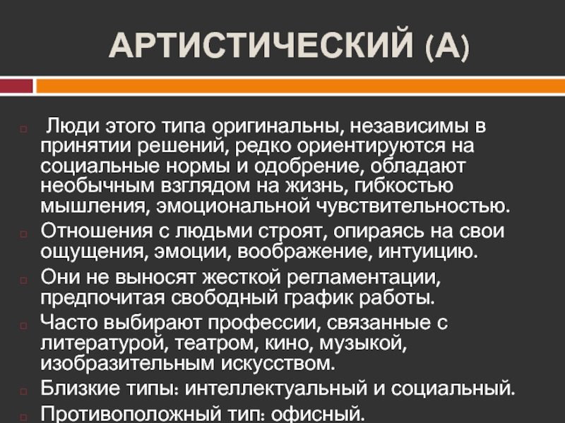 Слайд 20АРТИСТИЧЕСКИЙ (А)