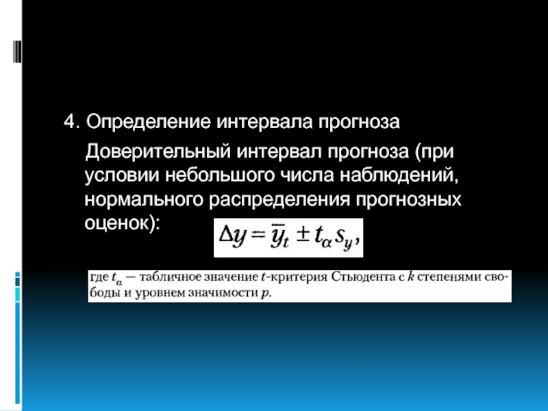 Погрешность прогноза отражается в виде доверительного интервала; точечный прогноз преобразуется в интервальный.