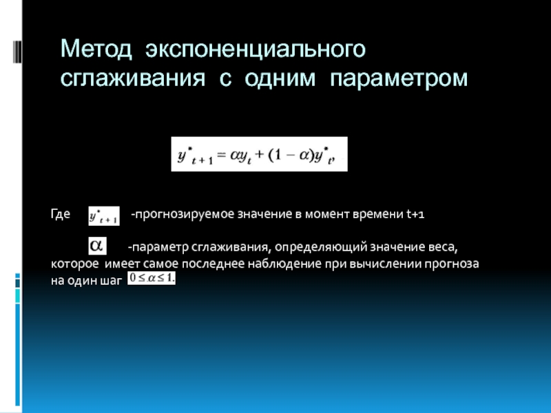 Слайд 3Метод экспоненциального сглаживания с одним параметром