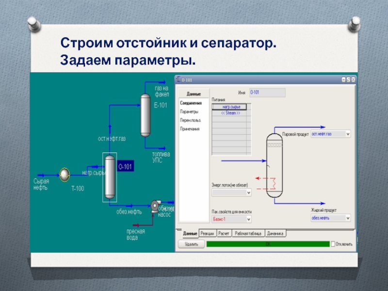 Слайд 10Строим отстойник и сепаратор. Задаем параметры.
