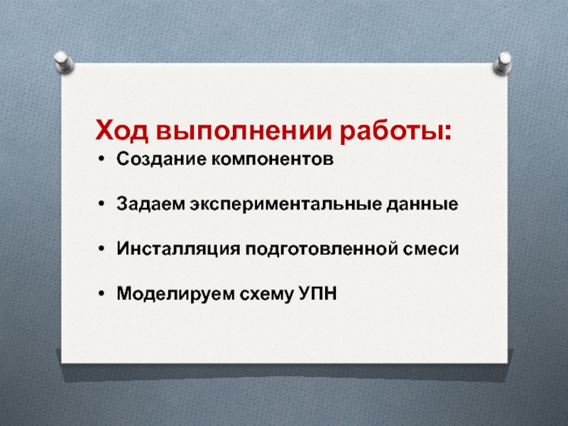 Слайд 81.Задаем экспериментальные данные 2.Инсталляция подготовленной смеси