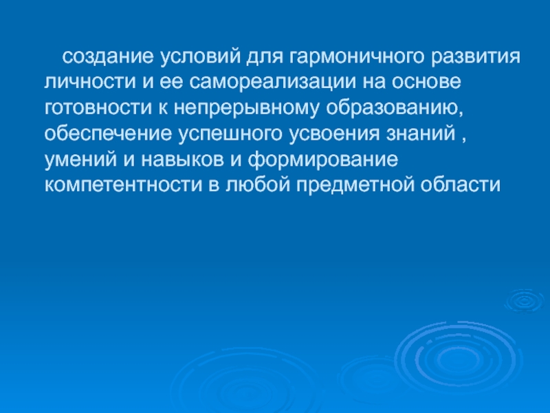 Слайд 5  создание условий для гармоничного развития личности и ее самореализации