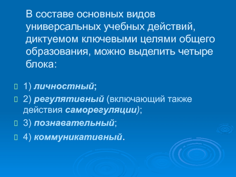 Слайд 8В составе основных видов универсальных учебных действий, диктуемом ключевыми целями общего