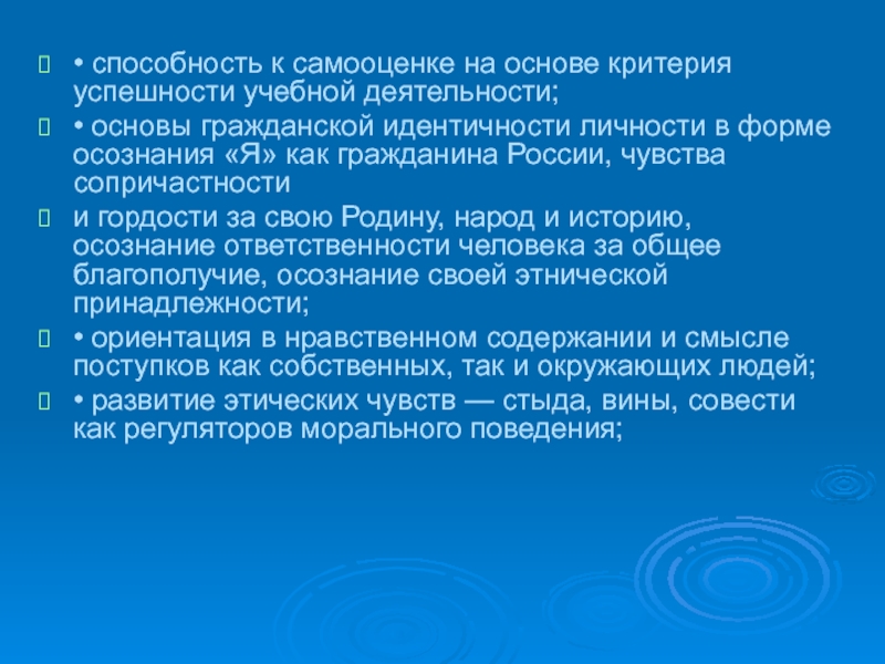 Слайд 14• способность к самооценке на основе критерия успешности учебной деятельности;