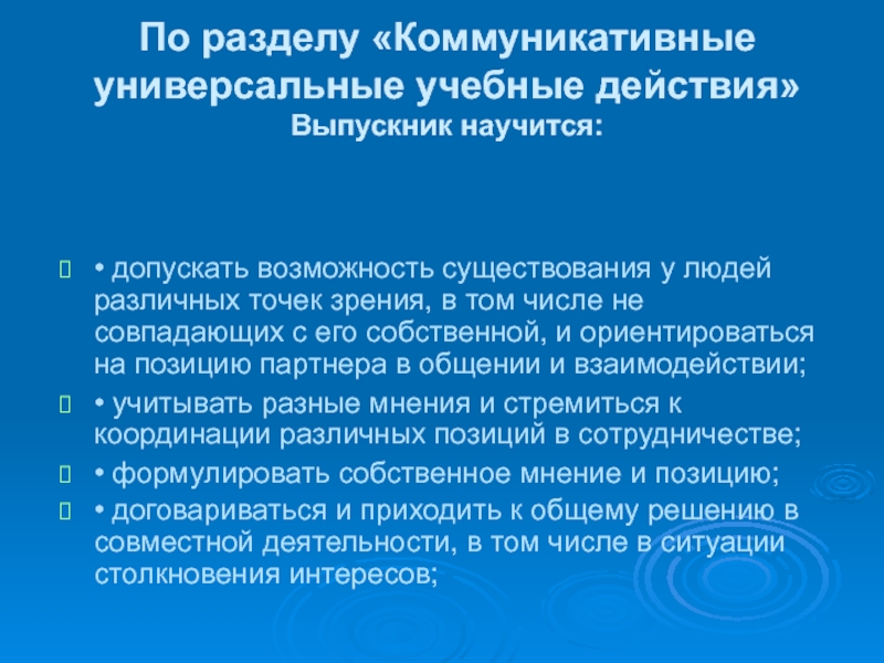 Слайд 20По разделу «Коммуникативные универсальные учебные действия»