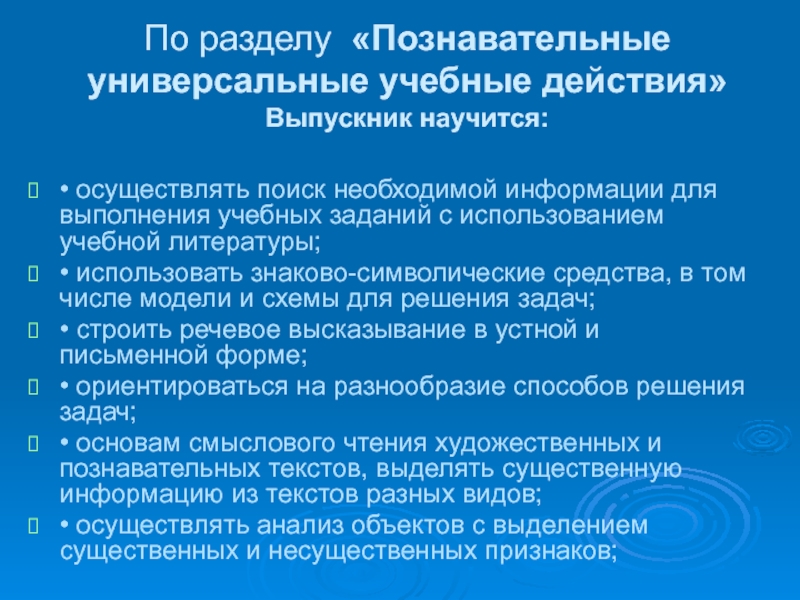 Слайд 18По разделу «Познавательные универсальные учебные действия»