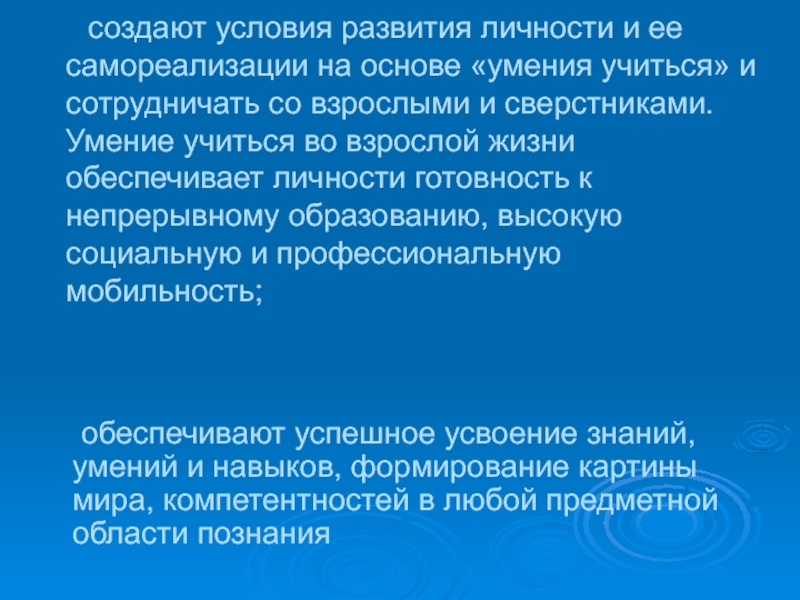Слайд 7  создают условия развития личности и ее самореализации на основе