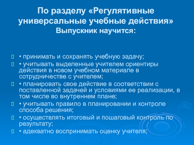 Слайд 16По разделу «Регулятивные универсальные учебные действия»