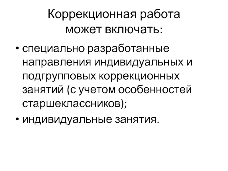 специально разработанные направления индивидуальных и подгрупповых коррекционных