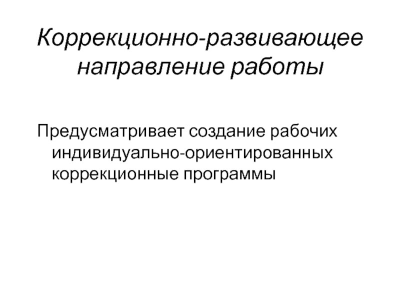 Предусматривает создание рабочих индивидуально-ориентированных коррекционные программы