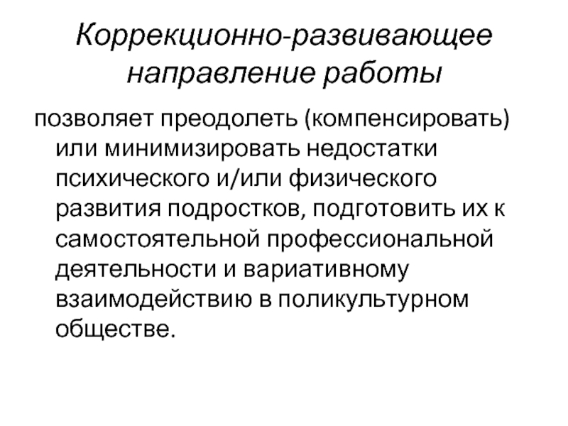 позволяет преодолеть (компенсировать) или минимизировать недостатки психического и/или физического
