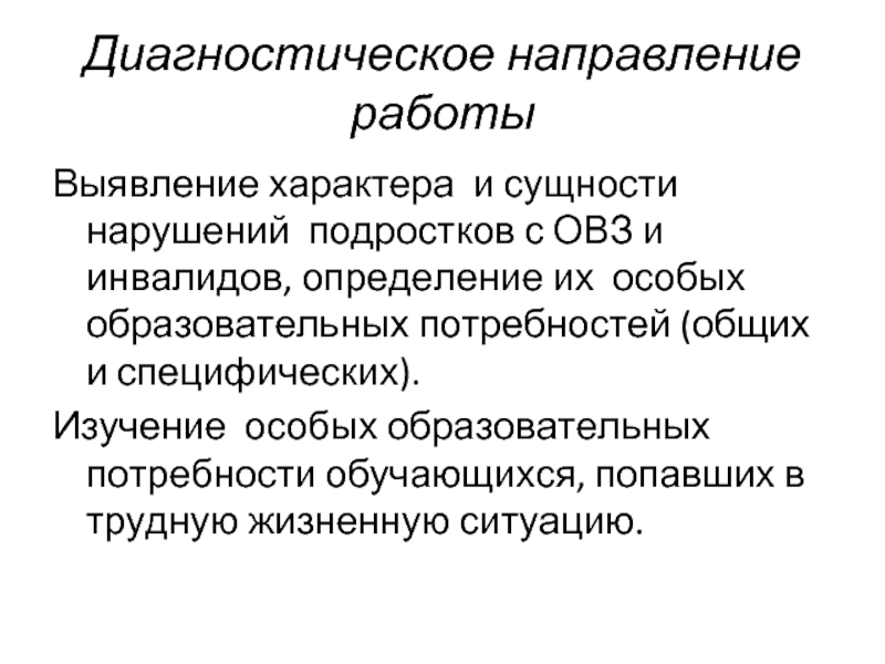 Выявление характера и сущности нарушений подростков с ОВЗ