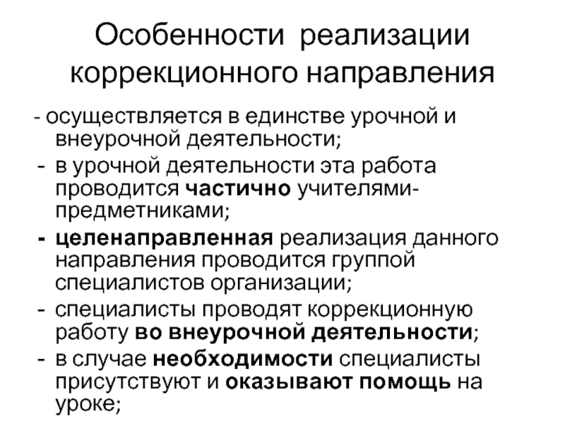 специалисты проводят коррекционную работу во внеурочной деятельности;