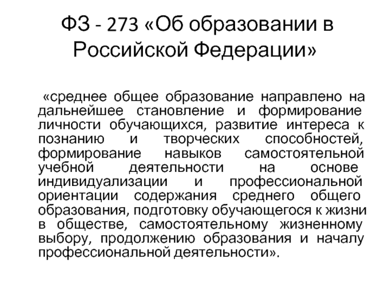 Слайд 2 ФЗ - 273 «Об образовании в Российской Федерации»