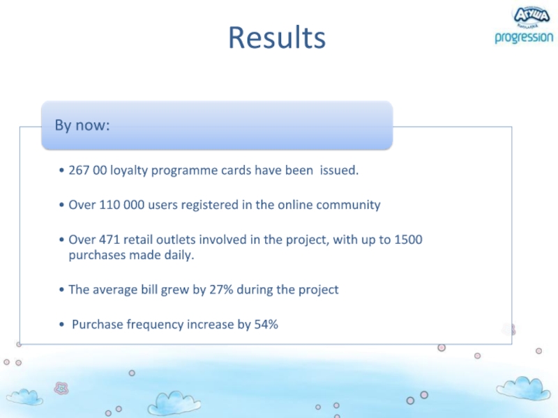 The first part of was aimed at working out a bonus system that would attract consumers’ attention and make it possible to reward regular customers. For this case Progression generated an innovative solution: the first consumer loyalty card for FMCG brand Agusha Kopilka (Piggy Bank)