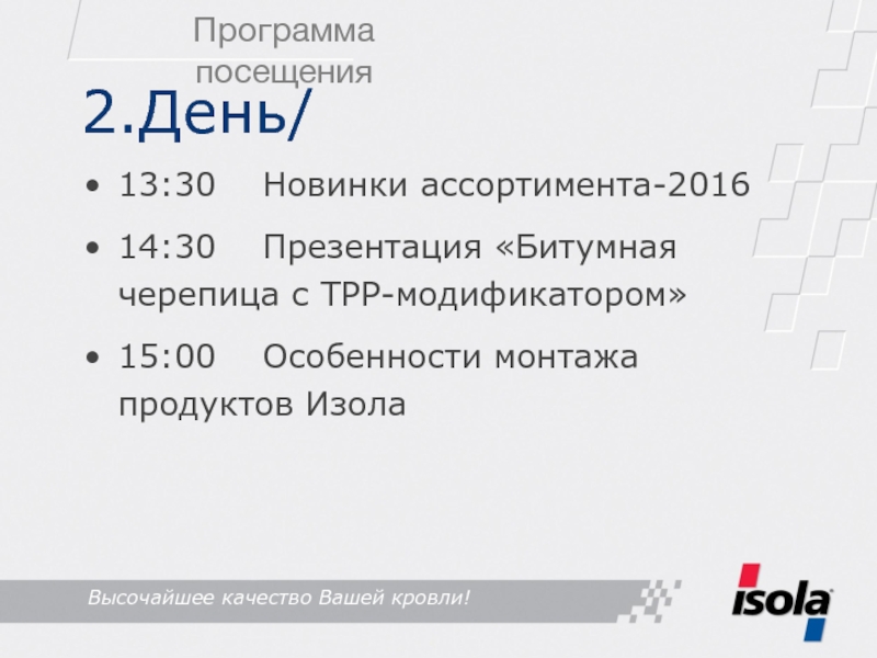 14:30 Презентация «Битумная черепица с ТРР-модификатором»
