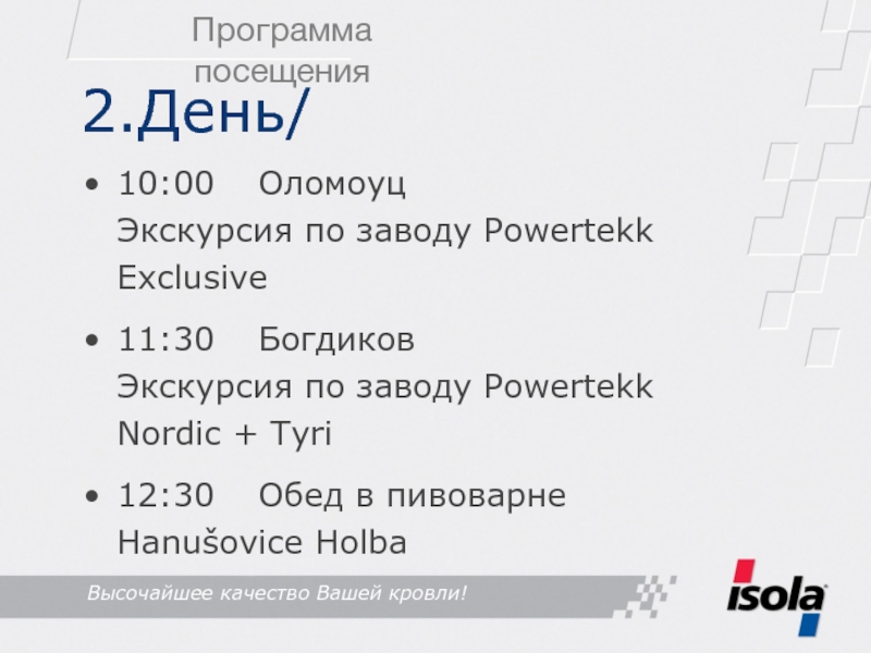 10:00 Оломоуц Экскурсия по заводу Powertekk Exclusive