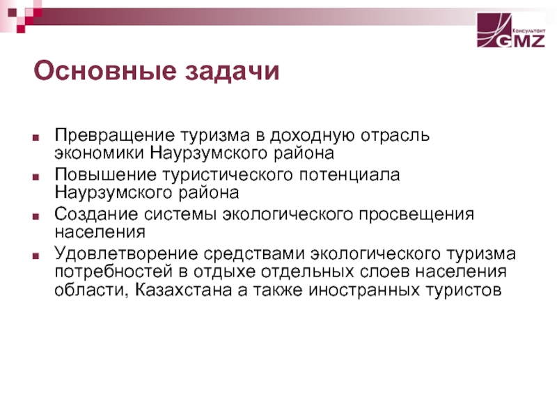 создание базового пакета инвестиционных проектов развития инфраструктуры туризма в Наурзумском районе.