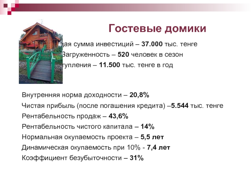 Чистая прибыль (после погашения кредита) –5.544 тыс. тенге