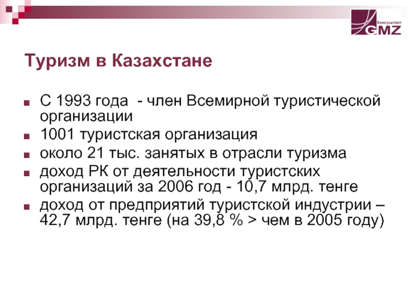 доход РК от деятельности туристских организаций за 2006 год - 10,7 млрд. тенге