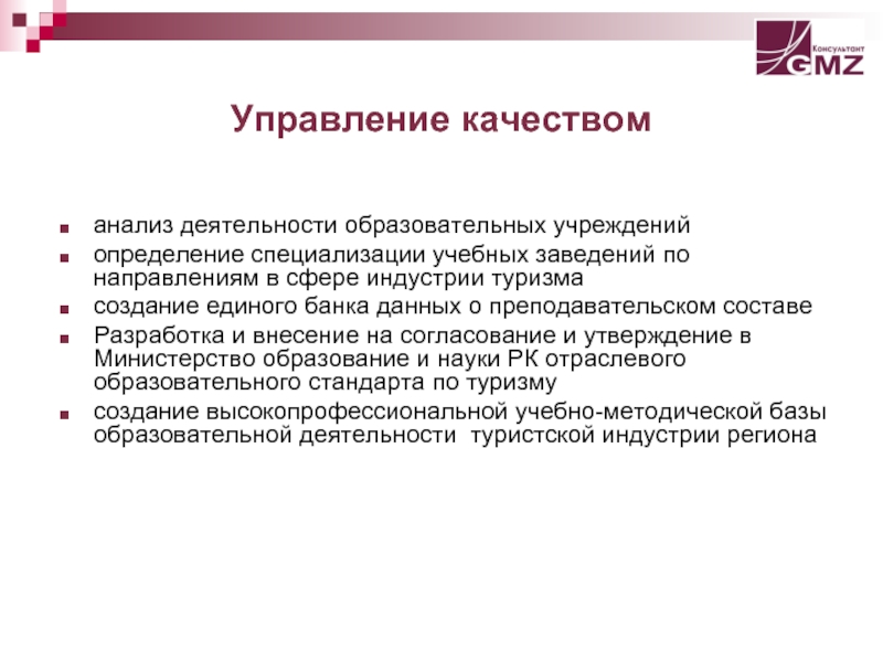 подготовки, переподготовки и повышения квалификации специалистов туристского сектора, разработка программ по коммерциализации турпродукта
