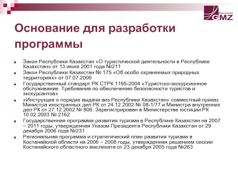 Государственный стандарт РК СТРК 1195-2004 «Туристско-экскурсионное обслуживание. Требования по обеспечению безопасности туристов и экскурсантов»
