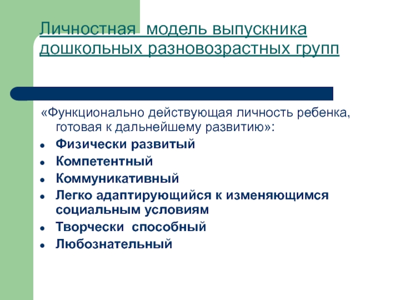 Слайд 17Личностная модель выпускника дошкольных разновозрастных групп