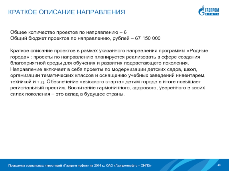 КРАТКОЕ ОПИСАНИЕ НАПРАВЛЕНИЯ