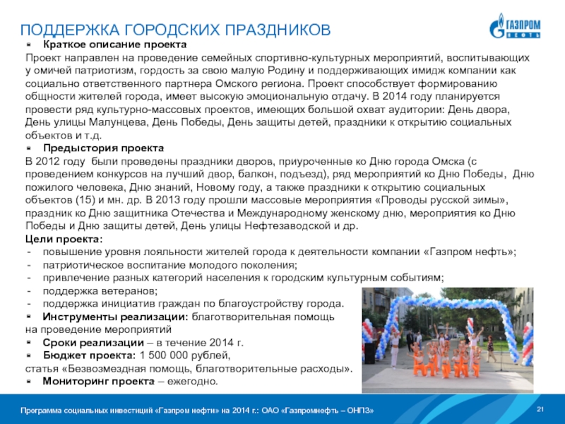 ПОДДЕРЖКА ГОРОДСКИХ ПРАЗДНИКОВ