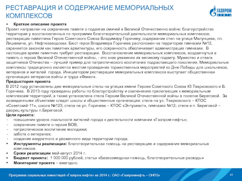 РЕСТАВРАЦИЯ И СОДЕРЖАНИЕ МЕМОРИАЛЬНЫХ КОМПЛЕКСОВ