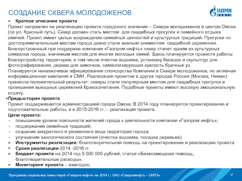 СОЗДАНИЕ СКВЕРА МОЛОДОЖЕНОВ