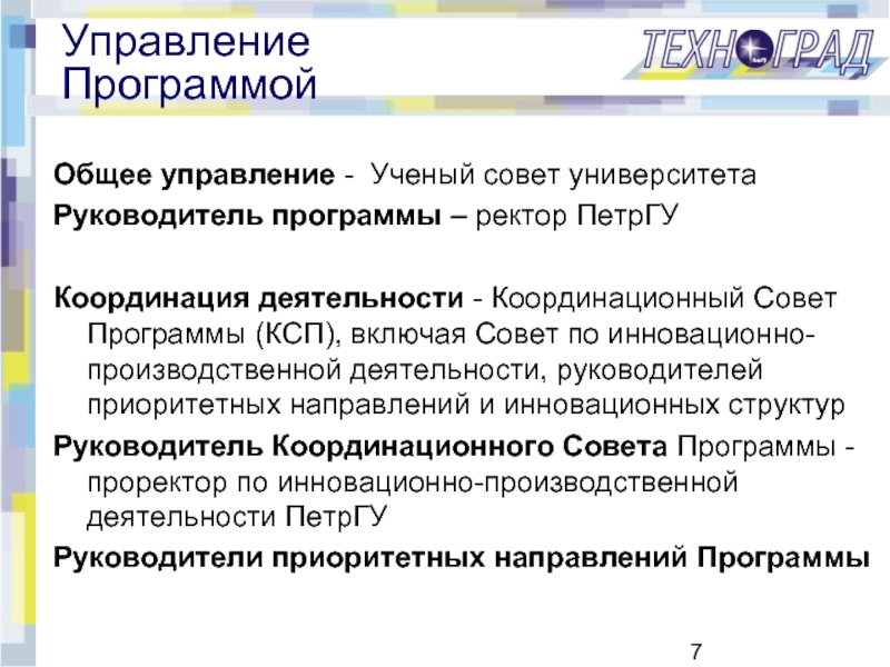 Слайд 7Управление Программой