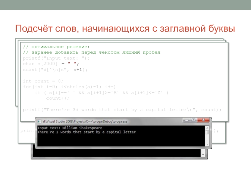 printf("There're %d words that start by a capital letter\n", count);