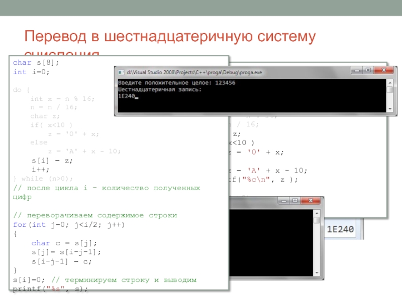 printf("Шестнадцатеричная запись:\n");