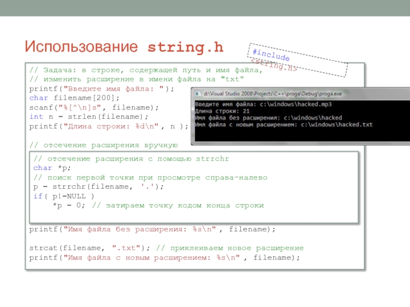// отсечение расширения с помощью strrchr