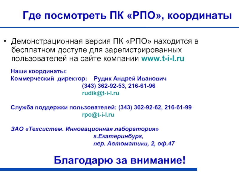 Демонстрационная версия ПК «РПО» находится в бесплатном доступе для зарегистрированных пользователей на сайте компании www.t-i-l.ru