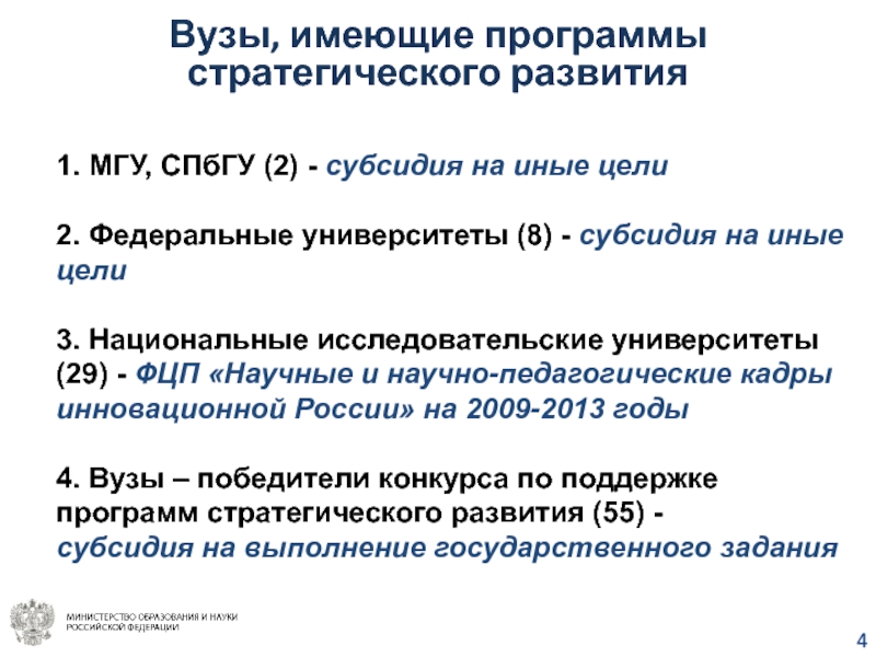 4. Вузы – победители конкурса по поддержке программ стратегического развития (55) -