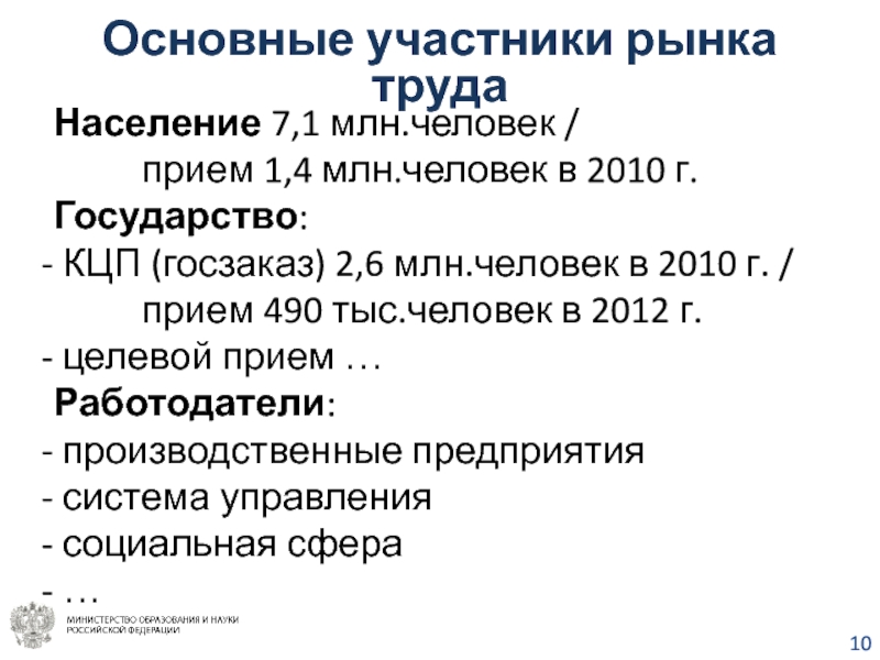 КЦП (госзаказ) 2,6 млн.человек в 2010 г. /