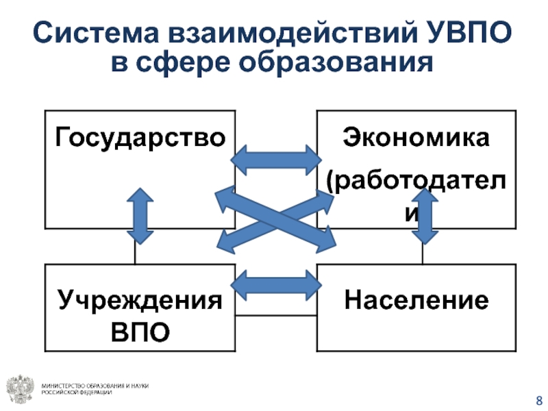 Слайд 8Система взаимодействий УВПО в сфере образования