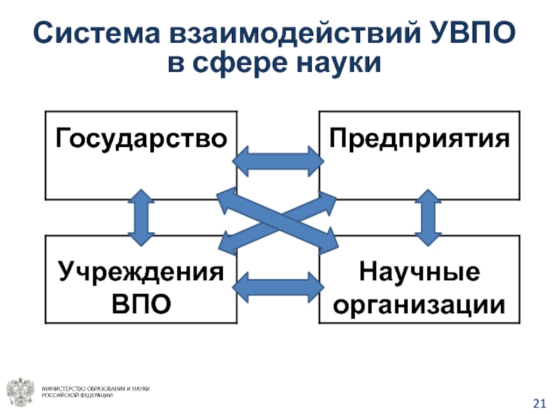 Слайд 21Система взаимодействий УВПО в сфере науки