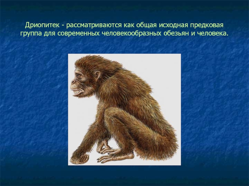 Слайд 4Дриопитек - рассматриваются как общая исходная предковая группа для современных человекообразных
