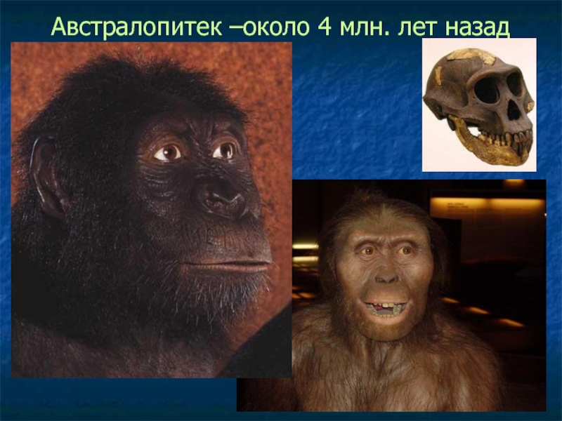 Слайд 8Австралопитек –около 4 млн. лет назад