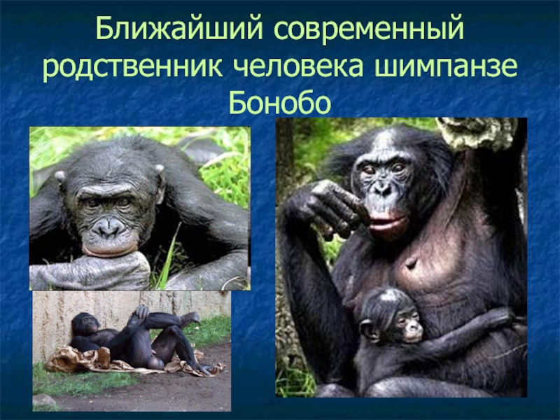 Слайд 6Ближайший современный родственник человека шимпанзе Бонобо