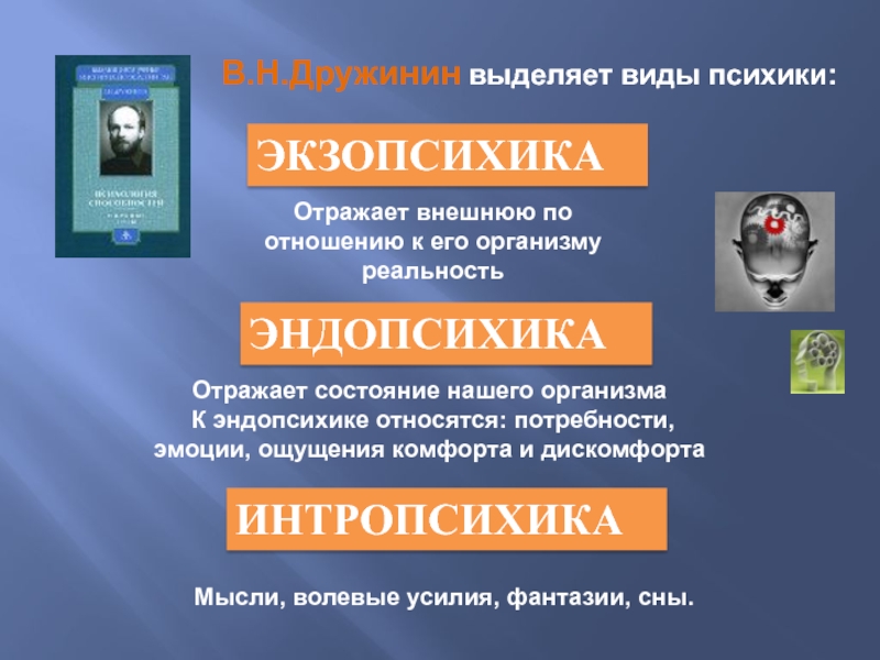 К эндопсихике относятся: потребности, эмоции, ощущения комфорта и дискомфорта