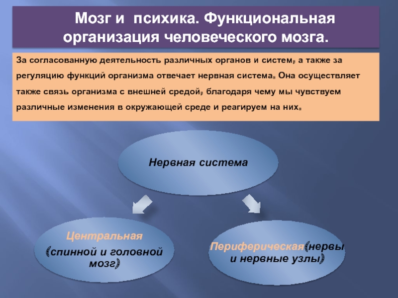 Мозг и психика. Функциональная организация человеческого мозга.