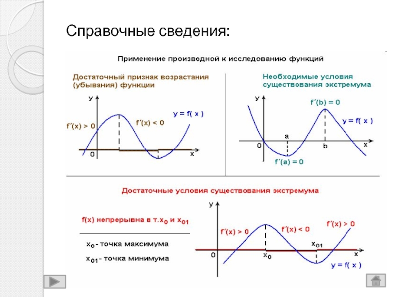 Слайд 16. Справочные сведения. Применение производной к исследованию функции. Монотонность, экстремумы.