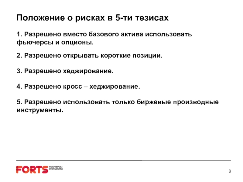 ОДП по индексным фьючерсам и (или) опционам не может превышать более 30% стоимости активов фонда;