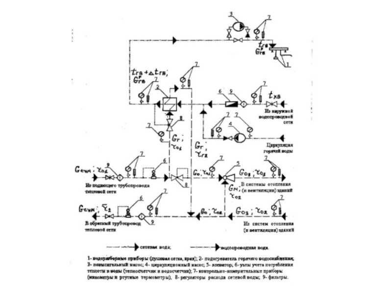 Слайд 44Принципиальная схема тепловых сетей жилых районов
