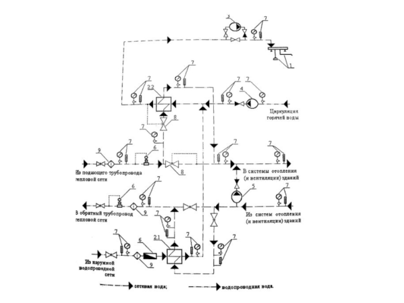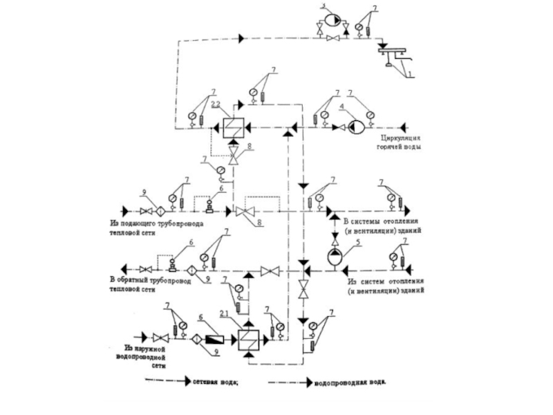2 –сетевые насосы; 3 – подпиточные насосы;